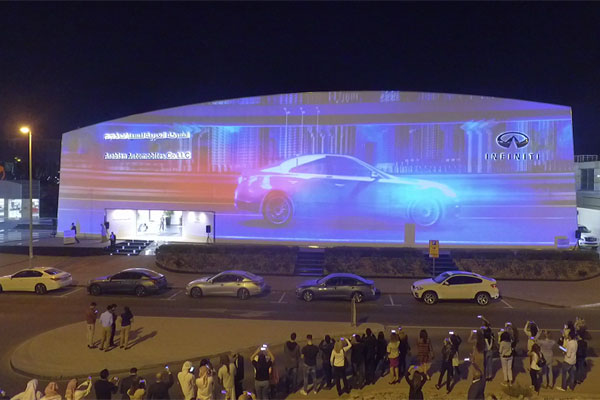 Salah Yamout, director of sales and marketing at Arabian Automobiles Company, said: “Arabian Automobiles is always inclined to adopt leading technological trends and grow with the digital age. This three-dimensional video of the all-new Q50s Red Sport 400, along with influential storytellers, has created the largest video billboard in the region. Staying true to our beliefs, the concept is a creative and engaging way to demonstrate the full range and capability of the car.”